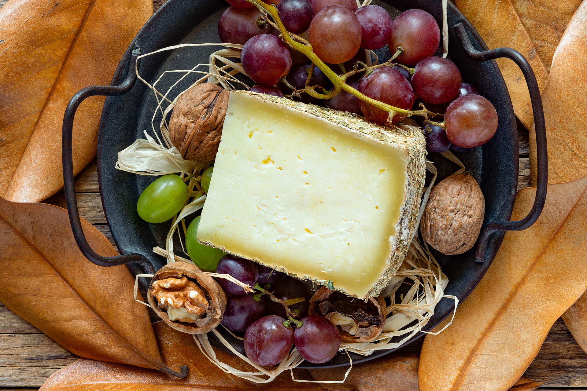 Formaggio grasso, di media-lunga stagionatura, a pasta dura. Il classico pecorino marchigiano avvolto in foglie e messo ad affinare in botti da vino. Un formaggio dall’aroma decisamente intenso.